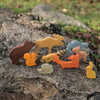 Set of 9 Wooden Woodland Animals consists of - a bear, a hedgehog, a bunny, a squirrel, a raccoon, a wolf, a fox, an elk, and a deer. This set could be an ideal part of any game providing an opportunity for lots of creativity and imagination. They are quite stable and stand upright yet have smooth surfaces without any sharp edges.