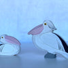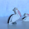 These wooden pelican figurines are hand-carved and hand-painted with such amazing attention to detail and make perfect wooden pelican figurines to play with. The set comes with 3 wooden pelican figurines: Male, Female, and Baby. This is a great addition to so many of our other figurine sets and individual pieces. This is a great set for interactive play. Combine with many of our trees, ponds, other animals, and many other sets and individual pieces, there is no limit to the creative ways that your little one can play with these beautiful hand-carved pelican figurines.