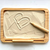 Many hours of fun with this portable wooden sand tray. Bring with you everywhere you go and watch your child's imagination go wild. Perfect toy for homeschooling. The tray comes with a wooden pencil and wooden tool.