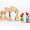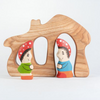 Natural Wooden Gnome House is so simple yet so unique and perfect for open-ended and imaginative play. The set consists of 3 pieces, the house, and 2 gnomes. The house finished with linseed oil and you can see the beautiful wood grain and both gnomes are covered with water-based acrylic paint. Both gnomes can pass through the door or even windows.