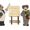 A beautifully handcrafted and hand-painted wooden figurines professionals are ready for adventure and fun play. These handmade wooden figurines are hand-painted and made with attention to every little detail. This set consists of 23 handmade wooden figurines: a Teacher with the board, a Construction Worker, a Policeman, a Firefighter with Hose, a Firefighter with Axe, a Musician, a Sailor, an Astronaut, an Artist, a Chief Cook, a Ballerina, a Security Guard, a Photographer, a Captain, a Woodworker, a Weight Lifter, a Waitress; a Professor; a Cleaning Person, a Doctor, a Nurse, a Painter. It also includes a Board with Easel and a Picture with an Easel.