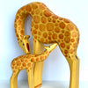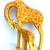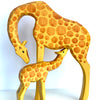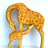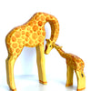 This hand-carved and hand-painted wooded giraffe toy is truly one of a kind. The set of two consists of one mamma and one baby giraffe figurine. The giraffe figurines can be placed in several different positions, and together they teach our little ones about the love that a mamma and her baby share. The wood carving technique makes each giraffe toy figurine very unique, you will not find two that are exactly the same. The beautiful hand-painted finish really brings these giraffe wood carvings to life. Let your little one's imagination free and help them to learn about the beauty of the animal world with this amazing set.