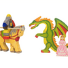 - Size: (Horse) 4.2 x 5.5 x 0.8;( Medival Knight) 3.7 x 3.2 x 0.7; (Princess) 3.2 x 1.9 x 0.7; (Dragon) 5.5 x 6.9 x 0.8 inches
