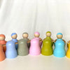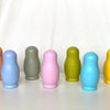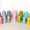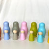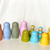Beautifully handcrafted and hand-painted pastel-colored set of the Russian wooden dolls with Peg Dolls inside. This is super fun and an educational way to learn through play. The set includes 7 wooden Russian dolls and 7 matching colored wooden peg dolls: yellow, green, pink, blue, grey, purple, and orange. So many ways to learn with this educational and fun set: matching the wooden dolls to their matching pots, sorting the wooden people by colors, using peg people for imaginary and creative role-play, counting the cute people figurines, creating beautiful color patterns with the colorful wooden pegs and so many more. They can even be used as a stacking toy! This pastel wooden Russian dolls with pegs set offer countless hours of imaginative and open-ended play.