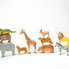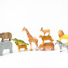 The beautiful painted Waldorf Safari Set of 10 Animals is a great set for creative and imaginative play. The set includes an elephant, a giraffe, a zebra, a hippo, a rhino, a tiger, a leopard, an antelope, a crocodile, and a lion. Figurines are hand-carved and painted by hands.