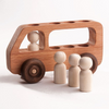 This wooden bus with passengers is hand-crafted from solid wood. The bus comes with four passengers. A wooden bus with passengers is a great stand-alone toy and also makes a great addition to other wooden toy vehicles. Add this to one of the other toys we carry, such as the matching fire truck. Teach our little one about taking the school bus to school or how buses are used in public transit. This can be a great toy to get your little guy or little girl ready for that first day of taking the school bus. This piece is crated with the utmost care and is extremely durable. This makes a great decorative piece in your child's room between play and will be a piece that they will want to share with their friends and hold onto to be handed down to their siblings or even their children someday.