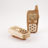 This unique wooden set of walkie talkies includes 2 devices and a storage case. Made of solid ash and beech and covered with natural Biofa oil. Frequency search wheel is movable and can be spinned.