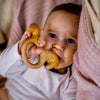 The convenient shape and material of the Rattle-Teether not only helps with teething, but it also helps with the development of motor skills, understanding of cause and effect, object performance, and refinement of attention and focus. It is designed to exercise children's hand-eye coordination and grabbing skills. This Rattle-Teether will provide opportunities for your baby to perceive sights, sounds, tastes, smells, and textures helping them to gain a better understanding of the world around them.
