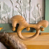 This is not only the ideal wooden rattle to soothe your baby during teething, but it is also educational. This natural wooden and hand-carved Rattle-Teether has been carefully sanded and polished by hand and is covered with a child-safe composition of linseed oil and beeswax. Filled with the natural grains of buckwheat, it produces a smooth, harmonious sound when shaken that will help to calm your baby during difficult teething moments. This Rattle-Teether comes in a linen pouch that is great for keeping it clean between uses. It is the ideal first toy for your baby.