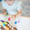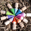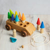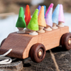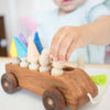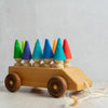 Wooden Toy Car with ten Pegs in Multi-Colored Hats