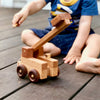 Beautifully handcrafted with attention to every little detail, it is sure to exceed your expectations. This catapult truck is a perfect toy for every little adventurist and warrior! The wooden catapult truck has a real-working slingshot and the wheels are fully functional making it so much fun. Load the catapult with ping pong balls or any other item and play catapult wars with friends!