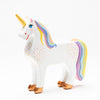 Hand-carved and absolutely beautiful, here is the one Mystical Mythical Unicorn. Made with solid hardwood, hand-painted using safe water-based paint, and polished by hands this beautiful rainbow unicorn toy is very smooth to the touch. Perfect wooden figurine for any imaginary fairy play. This Unicornio will be a perfect addition to any other wooden animals or figurines set.