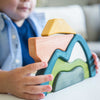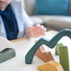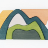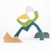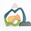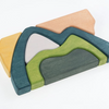 Beautiful Wooden Sculptural Mountains Blocks Stacker consists of 6 parts and it is perfect for open-ended and imaginative play. There are so many ways to play with this toy and so many options to create different things such as roads, tunnels, furniture, houses, and much much more. It can also be combined with any other building blocks set. It's a unique toy that will grow with your child and can be played in many ways. Wooden Dinosaurs set as shown in the picture sold separately.